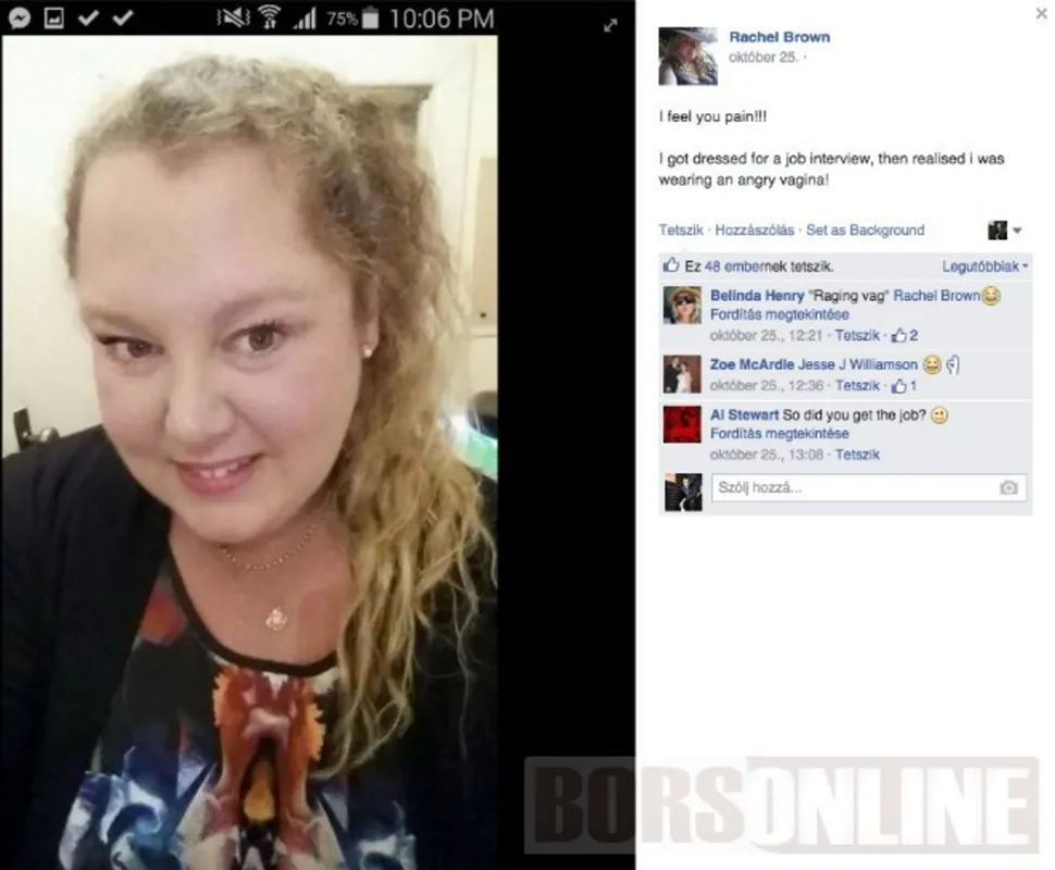 Az eredeti poszt után persze rögtön mindenki rákattant a ruhára: megvenni senki nem akarja, de felpróbálni egy fotó erejéig igen. Ugyanakkor többen hasonló élményekről számoltak be más ruhadarabokkal. Egy hölgy például a következő fotót és szöveget osztotta meg: “Állásinterjúra öltöztem, és csak ott jöttem rá, hogy egy dühös vaginát viselek!”