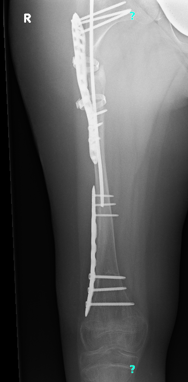 Még mindig lábadozik a júniusi műtétje után, ami sajnos nem a tervek szerint alakult. Egy egyszerű fémcserére készültünk, de végül öt és fél órás, nagy beavatkozás lett belőle. A műtőasztalon, minden óvatosság ellenére, két helyen tört el a combcsontja az orvos kezében. Most lemezek és csavarok tartják össze a lábait. A másik combja is rossz állapotban van, így újabb műtét vár rá.