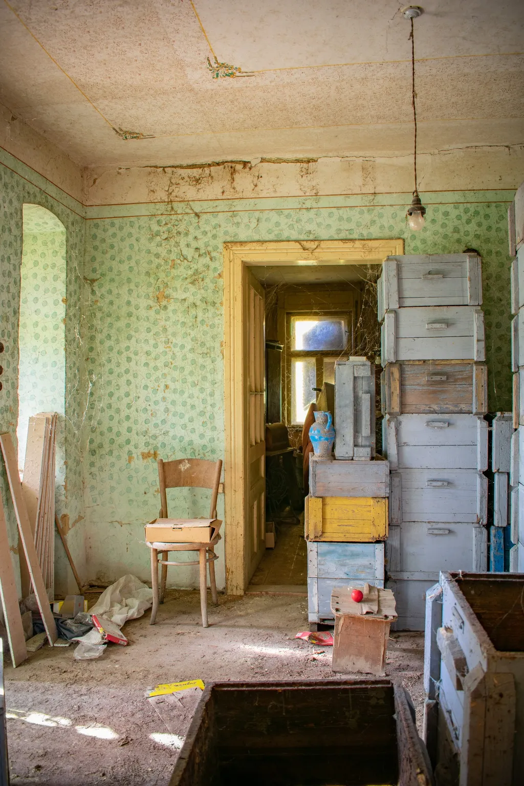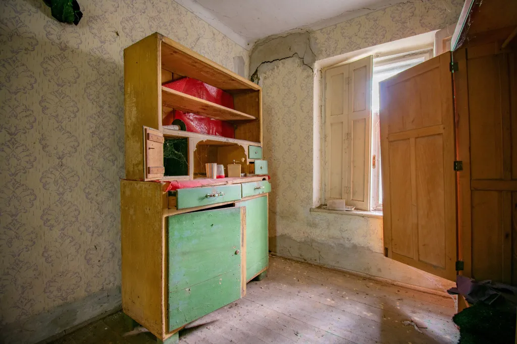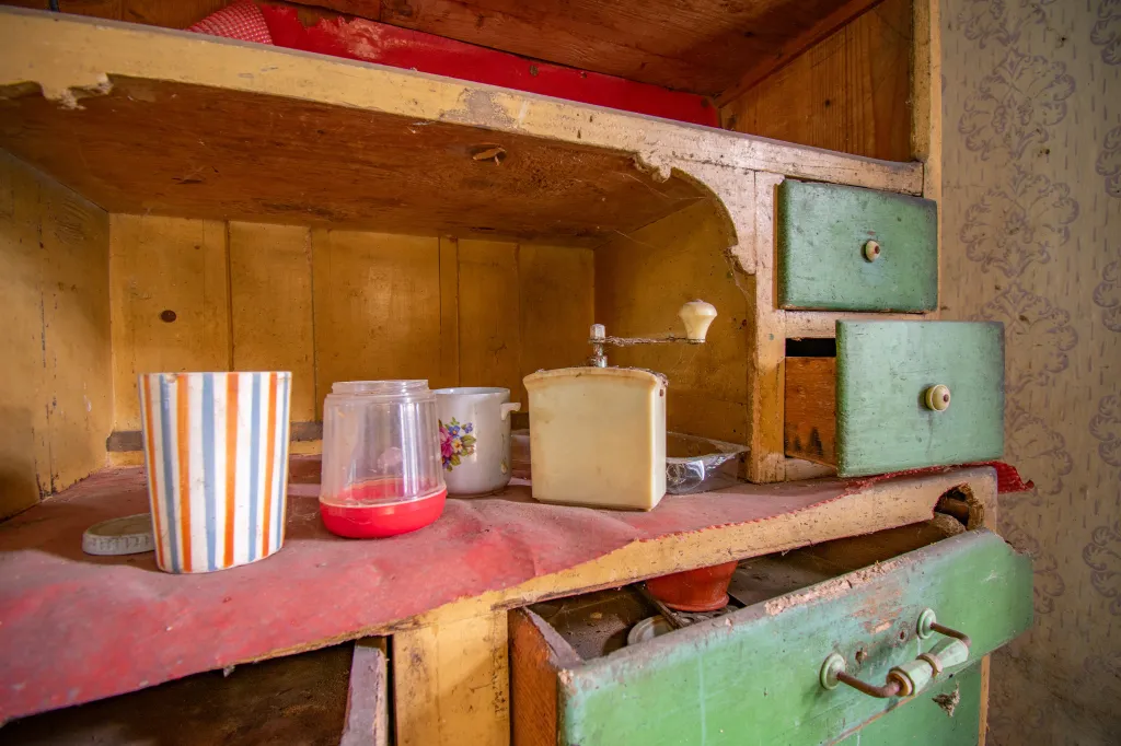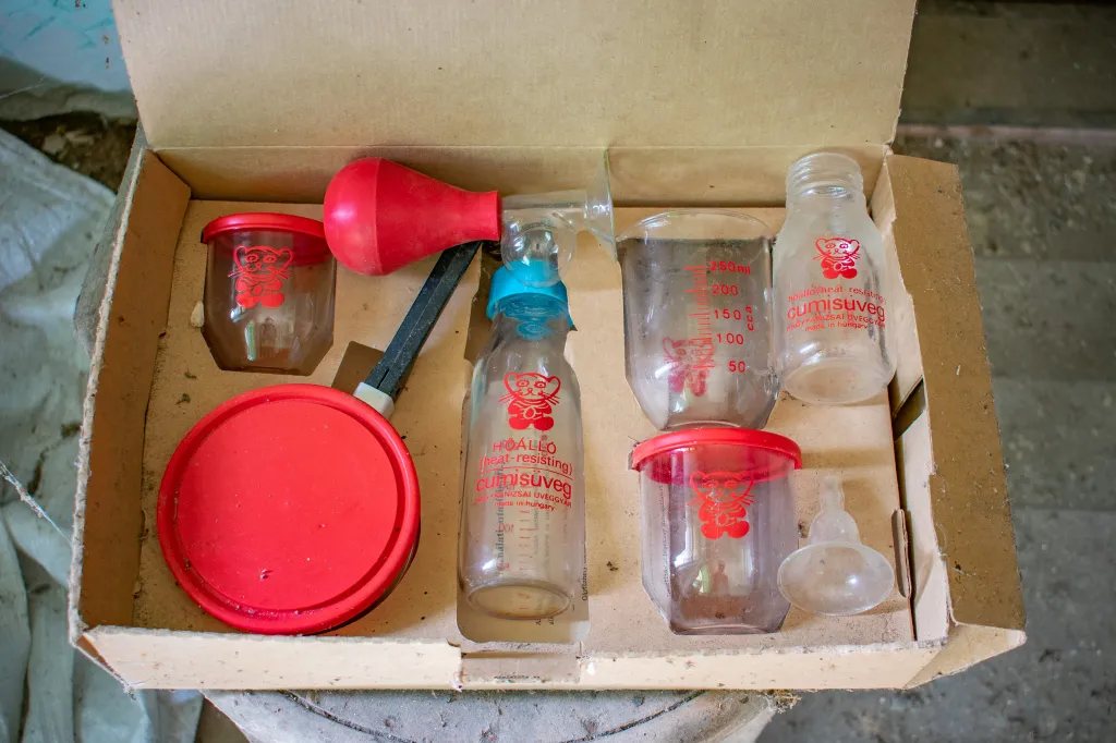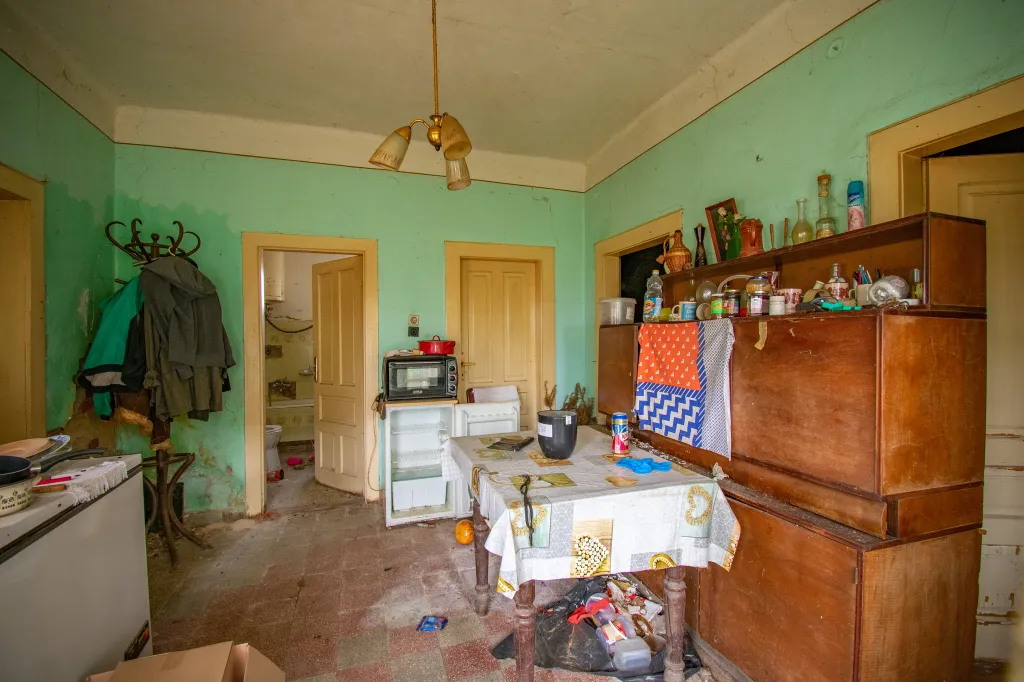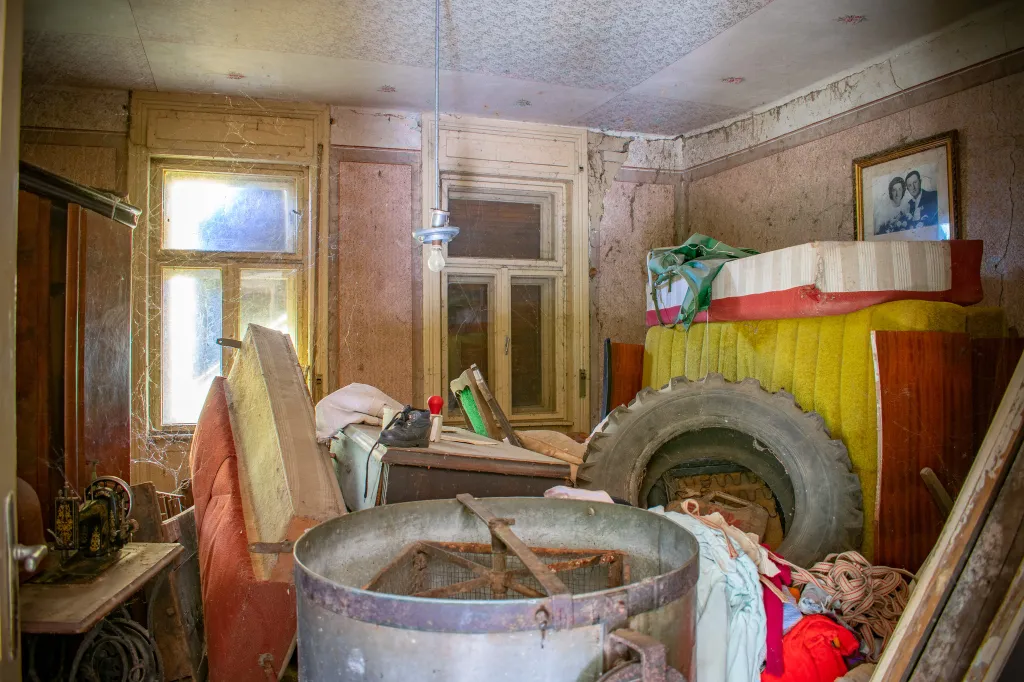 Az egyik szobában rácsos kiságy áll, mellette poros cumisüvegek. Minden arra utal, hogy egy kisbaba is cseperedett itt, akit gondos kezek ringattak álomba. A konyhaasztalon egy üres sörösüveg maradt, mintha János csak egy percre lépett volna ki az udvarra. A sarokban ott pihen a régi Singer varrógép, amellyel talán ruhák készültek, függönyök születtek, és amelynek egyenletes kattogása betöltötte az esték csendjét. Kalap és cipő hever a szobában, mintha a gazdájuk bármelyik pillanatban visszatérhetne értük. Mégis, évek óta nem tette be ide senki a lábát. A por vastagon ül meg mindenen, az ablakokon beszűrődő fény pedig kegyetlenül világít rá a hiányra. Rejtély, mi történhetett a családdal, de valószínűleg sietősen kellett távozniuk, hiszen mindent hátrahagytak.