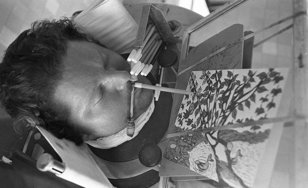 Volt azonban Mária, akinek csak a szája és a szeme mozgott. És ezzel a szájjal tanult meg írni, festeni, alkotni. 1996-tól a Szájjal és Lábbal Festő Művészek Egyesületének ösztöndíjasa lett. Csendéleteket, tájképeket festett. Én láttam őt férjhez menni. Utazott, ő igazán boldog volt.Egészséges emberek nem éltek olyan boldogságban, mint ő meg a férje