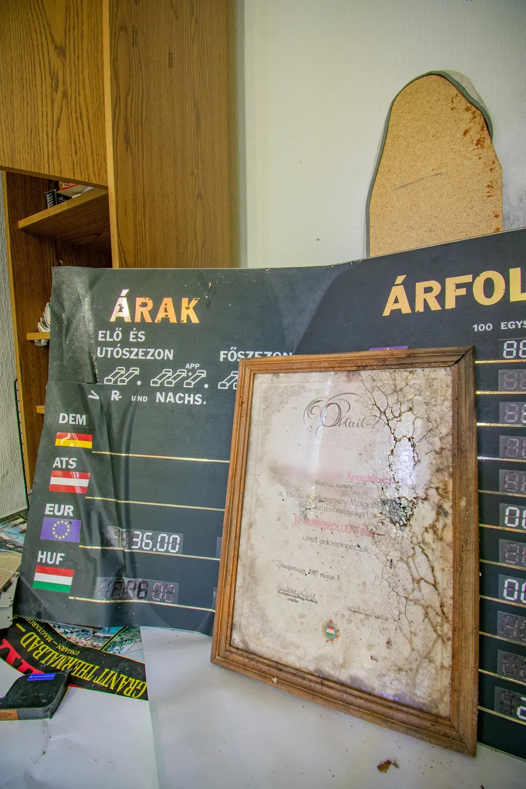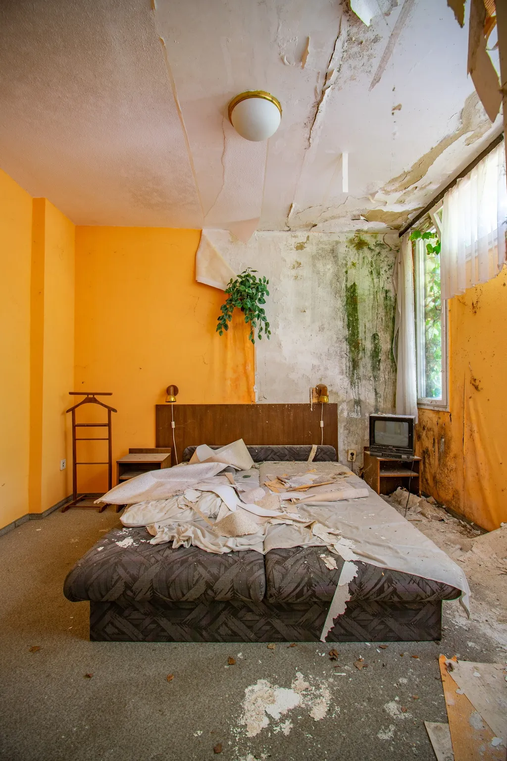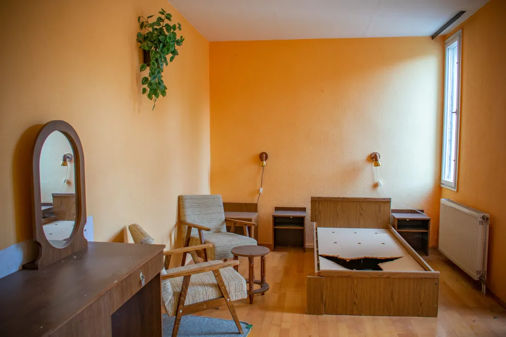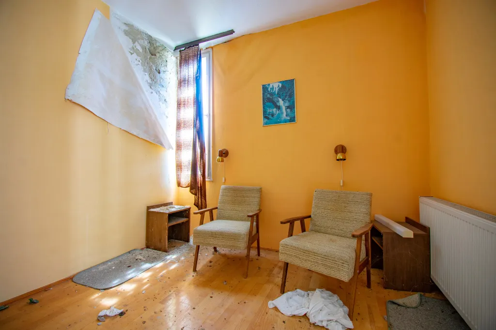 A fal mellett áll egy hatalmas zárt széf, nem lehet tudni, hogy mit rejt. A recepciós pult mögött kulcsok lógnak számozva, mintha a vendégek bármelyik percben visszatérhetnének. Az ágyon összegyűrt lepedők várják, hogy valaki megigazítsa őket. Rejtély, hogy pontosan mi történhetett az épületben. A hotel falai még mindig őrzik a vendégek utolsó éjszakájának a titkát.