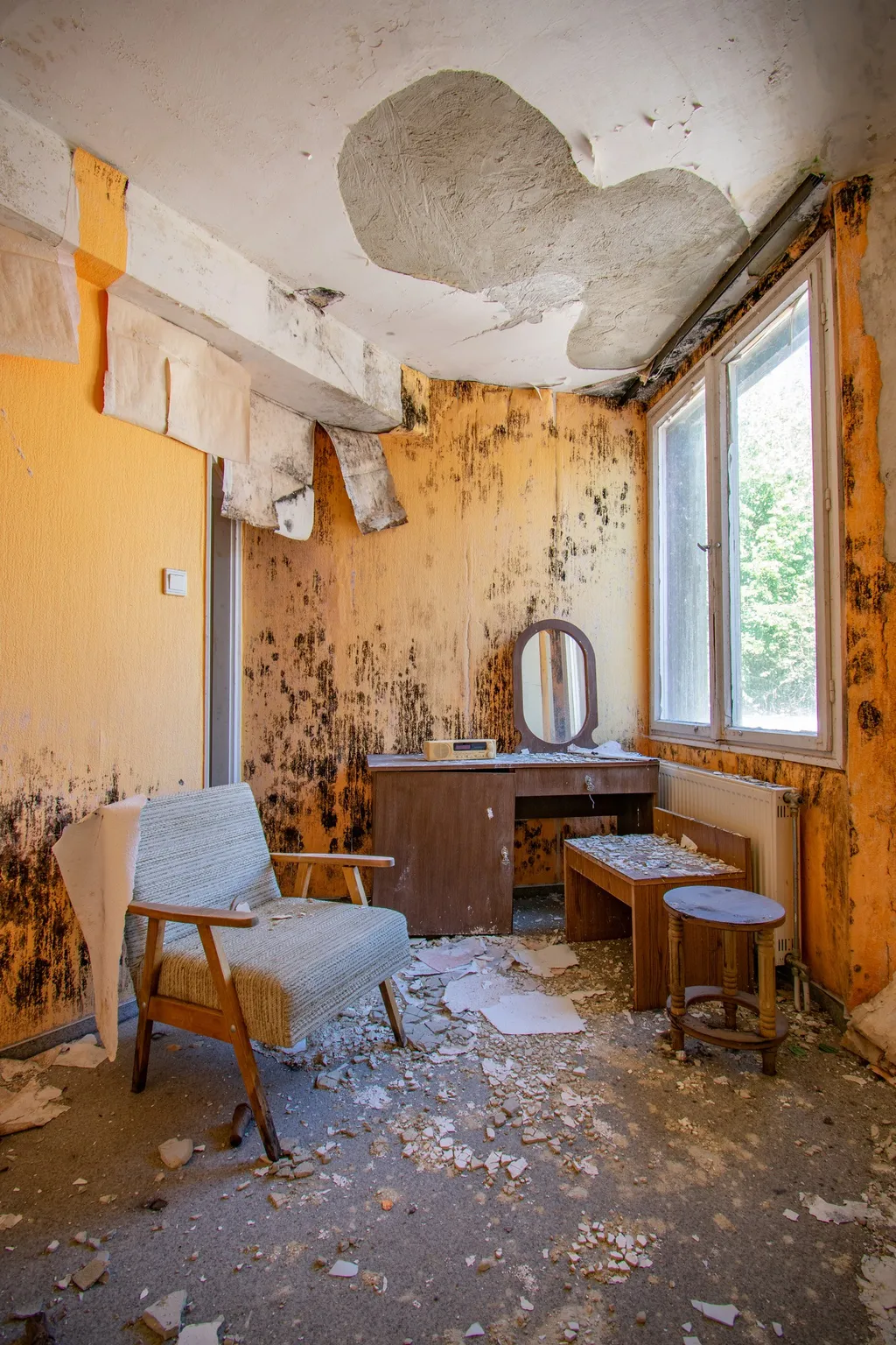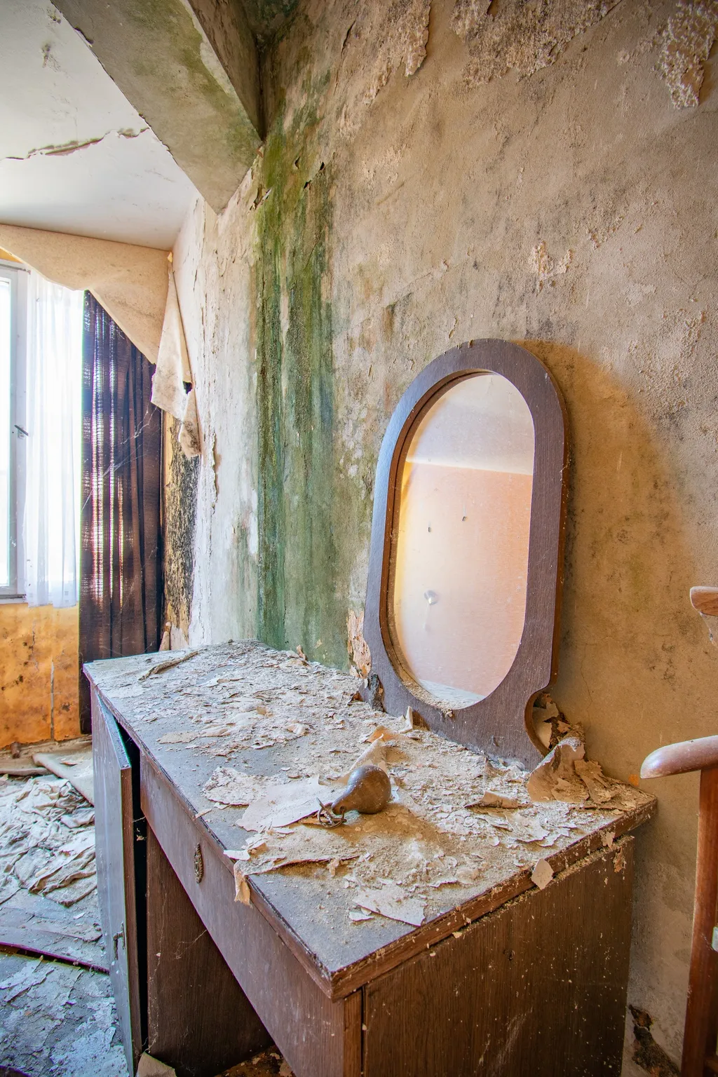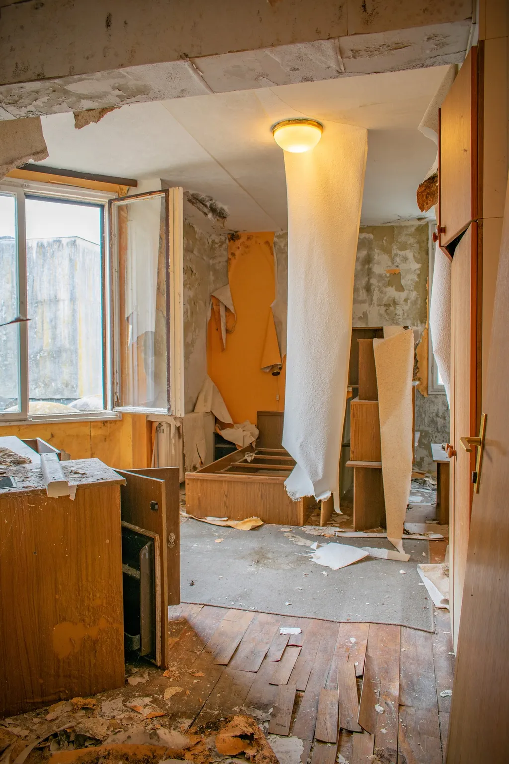 A fal mellett áll egy hatalmas zárt széf, nem lehet tudni, hogy mit rejt. A recepciós pult mögött kulcsok lógnak számozva, mintha a vendégek bármelyik percben visszatérhetnének. Az ágyon összegyűrt lepedők várják, hogy valaki megigazítsa őket. Rejtély, hogy pontosan mi történhetett az épületben. A hotel falai még mindig őrzik a vendégek utolsó éjszakájának a titkát.