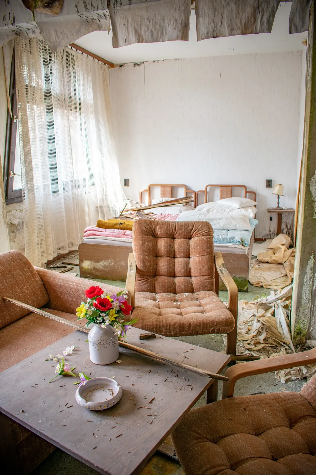Mintha csak tegnap zárták volna be; évekig elhagyatottan állt a tóparti szálloda. A vendégek sietősen távozhattak, mert még az ágyak is bevetve maradtak.
