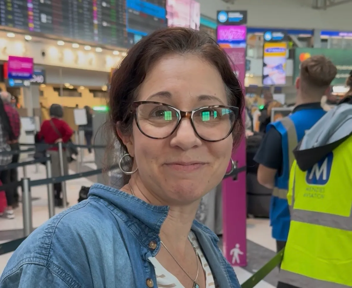 Én itt vagyok a gyerekemmel a reptéren. 5 napot voltunk a lánytestvéremnél Budapesten. Vissza akartunk utazni Izraelbe, de nem sikerült. Most inkább visszamegyünk a testvéremhez. Holnap pedig visszajövünk újra, hátha indul a gépünk