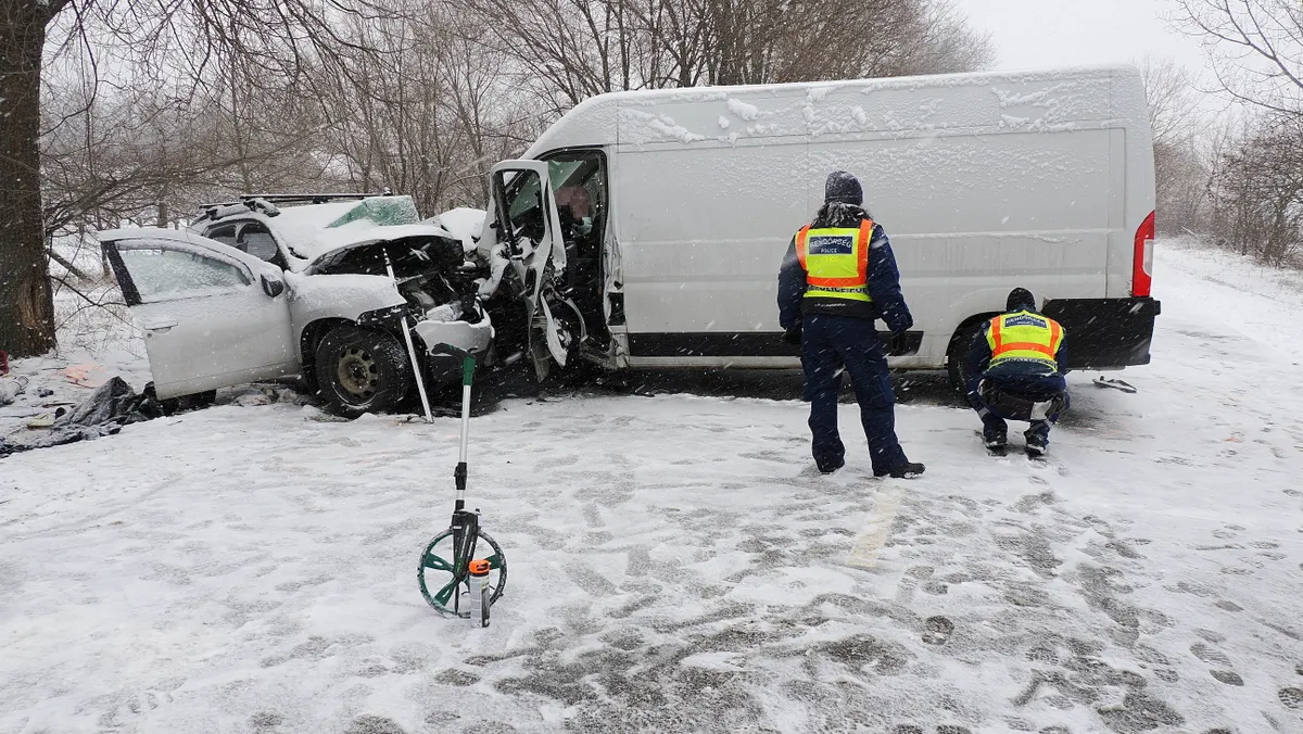 A rendőrség tájékoztatása szerint a furgon megcsúszott a havas úton, áttért a szemközti forgalmi sávba, és ott félfrontálisan ütközött a személyautóval. A járművek megpördültek, végül árokba csúsztak. Az egyik autóba szorult embert a kecskeméti hivatásos és nyárlőrinci önkéntes tűzoltók feszítővágó segítségével szabadították ki, a másik járművet pedig áramtalanították - közölte a katasztrófavédelem.