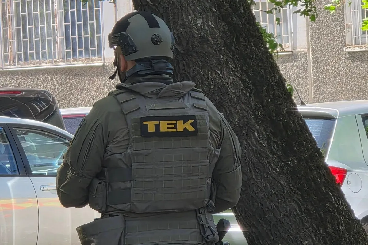 Elvileg túsztárgyalás történik az épületben. Érkeztek mesterlövészek is a házhoz. Több TEK-es is van az utcán teljesen menetfelszerelésben és rendőrök is vannak velük