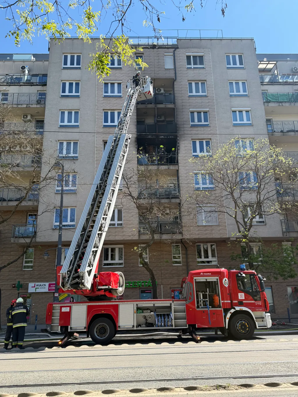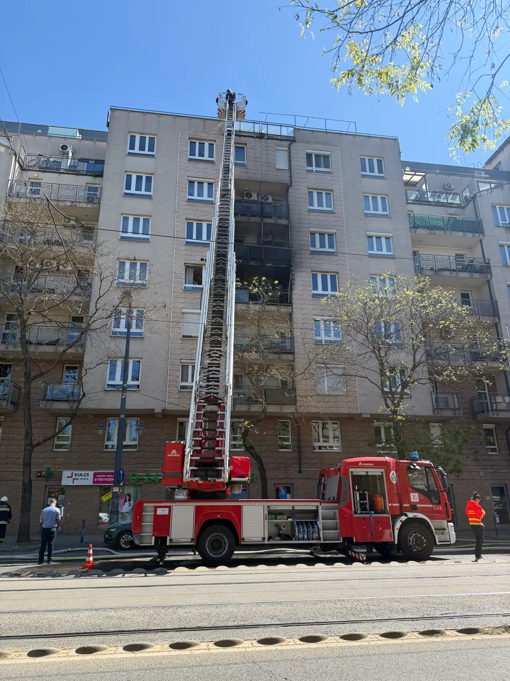 A katasztrófavédelem tájékoztatás szerint a tüzet már eloltották. A lángok egy 4. emeleti lakás erkélyén csaptak fel, onnan átterjedtek a lakásba, közben pedig egy 5. emeleti erkélyt is elértek.
