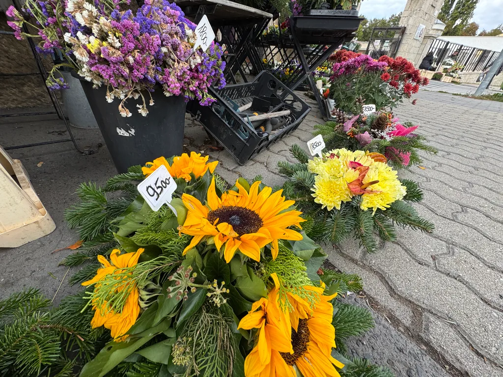 Közeledik a halottak napja, virág is lesz hozzá bőven, az árak még csak mérsékelten emelkedtek a tavalyihoz képest. A slágervirág, a krizantém még nem lepte el a virágárusok standjait, de már így is nagy a választék virágból a temetők bejáratainál.