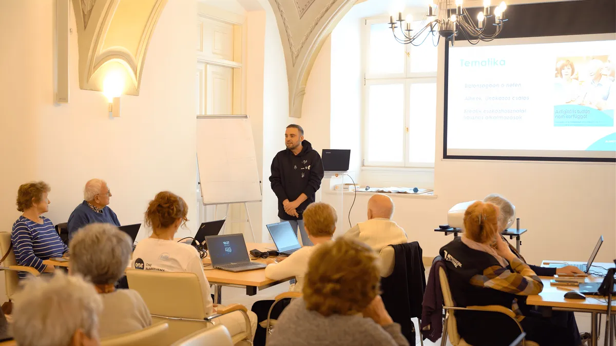 A digitális eszközök mára nélkülözhetetlenné váltak, ugyanakkor – ahogy arra a kutatások is rámutattak – sok idős embernek még mindig félelmet vagy bizonytalanságot jelentenek. A Netpercek Kávéház kiscsoportos, barátságos légkörben segít leküzdeni ezeket a gátakat és megmutatja, hogyan válhat az internet a mindennapi kapcsolattartás, ügyintézés, szórakozás biztonságos segítőtársává. A program középpontjában a tudatos és biztonságos internethasználat, a közösségi média és chatprogramok, az ügyfélkapu, az online vásárlás, valamint az AI által generált tartalmak felismerése áll. A résztvevők tanulását szakértők és önkéntes segítők támogatják.