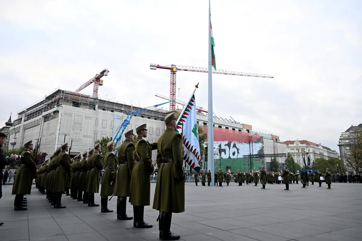 Október 23-án katonai tiszteletadással felvonták a nemzeti lobogót az 1956-os forradalom és szabadságharc 69. évfordulóján az Országház előtti Kossuth Lajos téren.