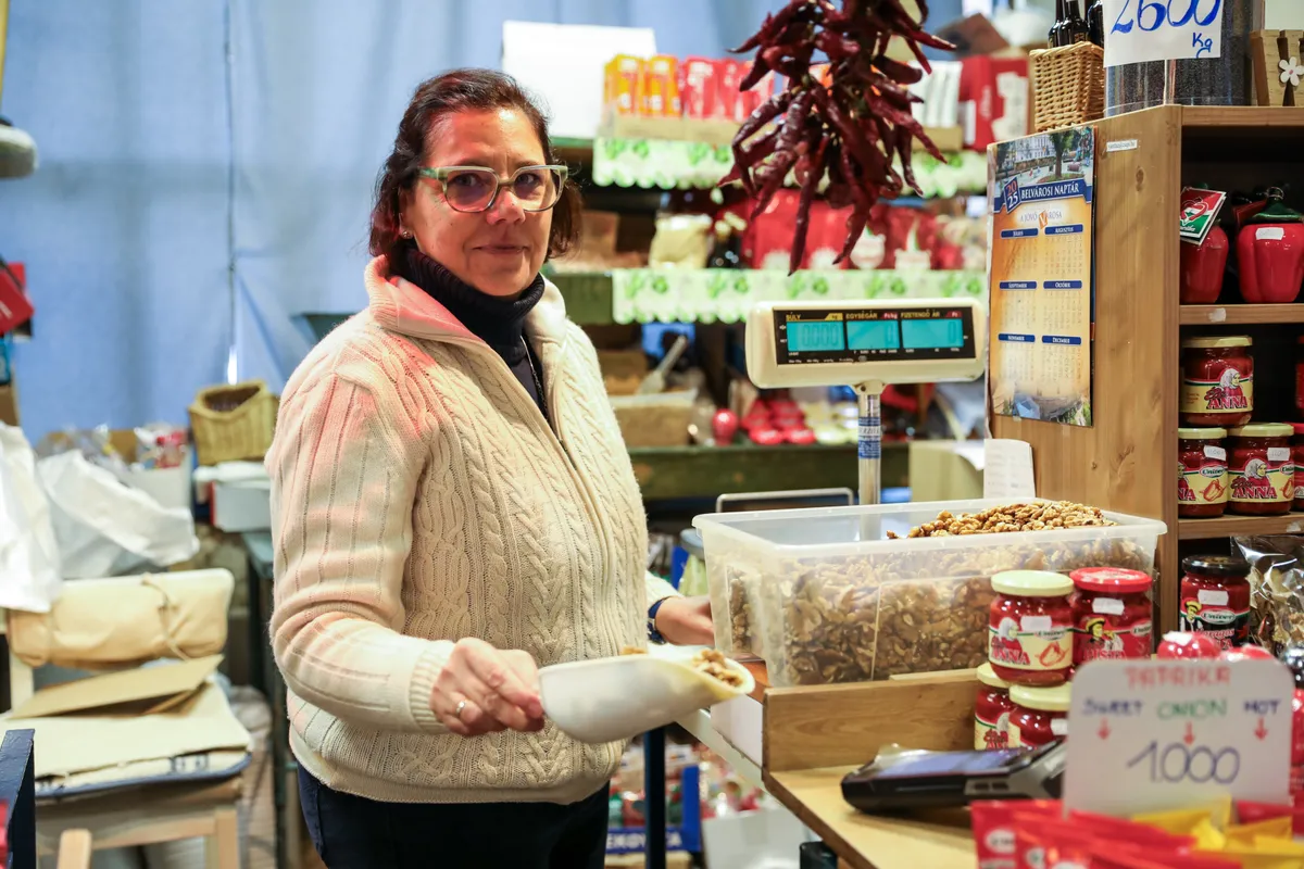 Általában még csak az árat kérdezik. Nagyon megváltozott a piaci vásárlóréteg. Sokan már a nagy bevásárlóközpontokban szerzik be. Az idősek kihalnak. Nekem már az édesanyám is itt árult, tehát generációk óta el tudom mondani, hogy mennyiségben jóval kevesebb az, amit be kell szerezni és amit el tudunk adni. Egyáltalán nem indult még be a karácsonyi szezon, inkább csak érdeklődnek és néznek. Nálam az az előny, hogy tudom darálni a mákot és a diót is.