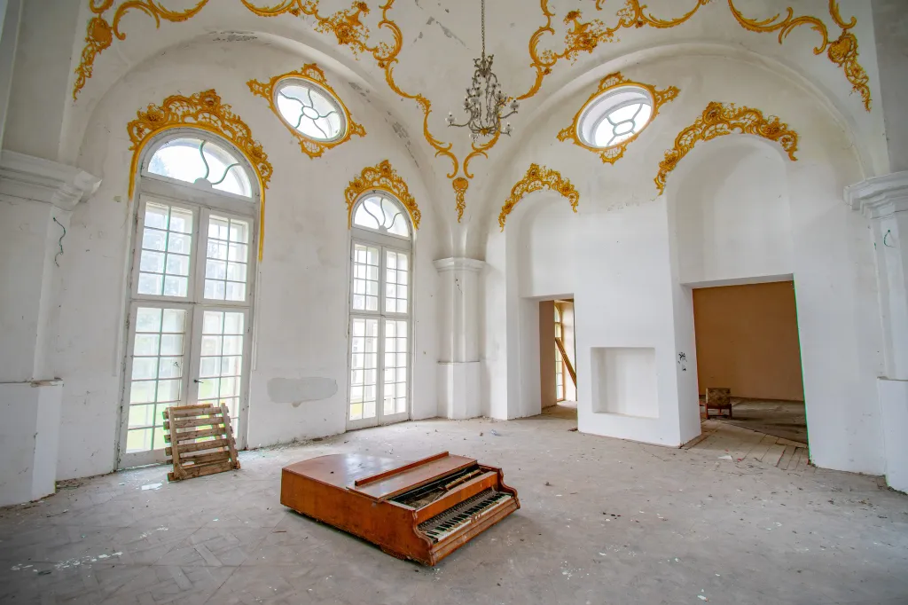 A felvidéki kastély nagytermében egy zongora áll, az egyik szobában pedig egy kristálycsillár lóg a plafonról. Egykor fényűző élet színtere lehetett, de mára mindent belepett a por...