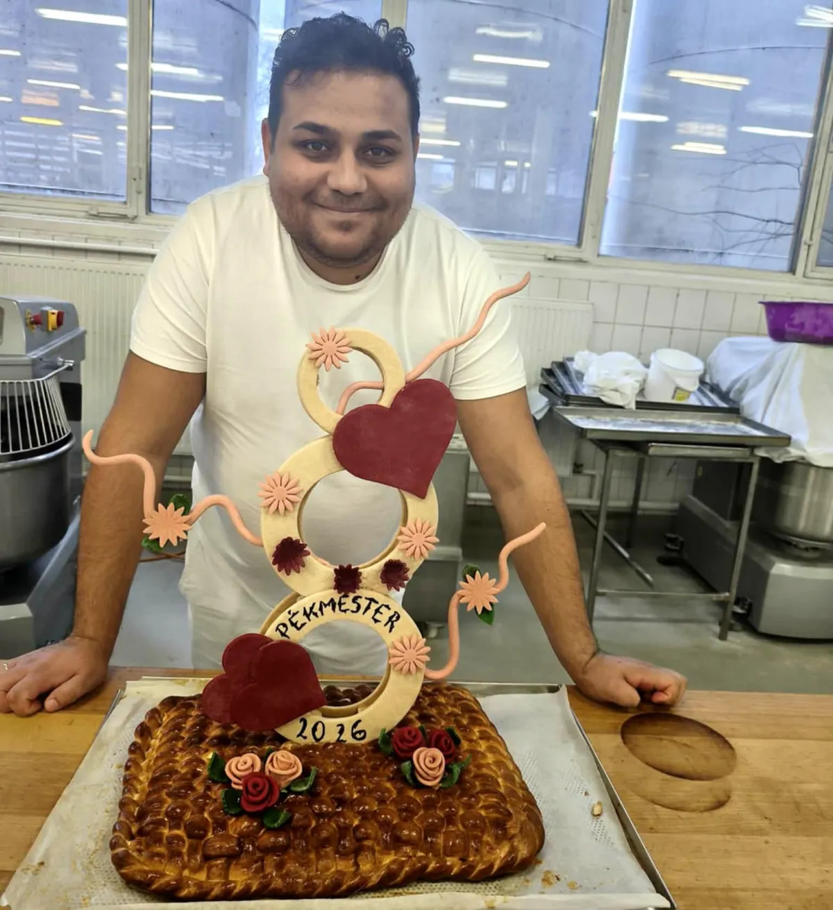- A dísztészta ehető hozzávalókat tartalmaz, de maga a mű már különösebb élvezeti értékkel nem bír. Nem is az a lényege, hanem az, hogy a rátermettségemet igazoljam – fejezte be a leendő mester.