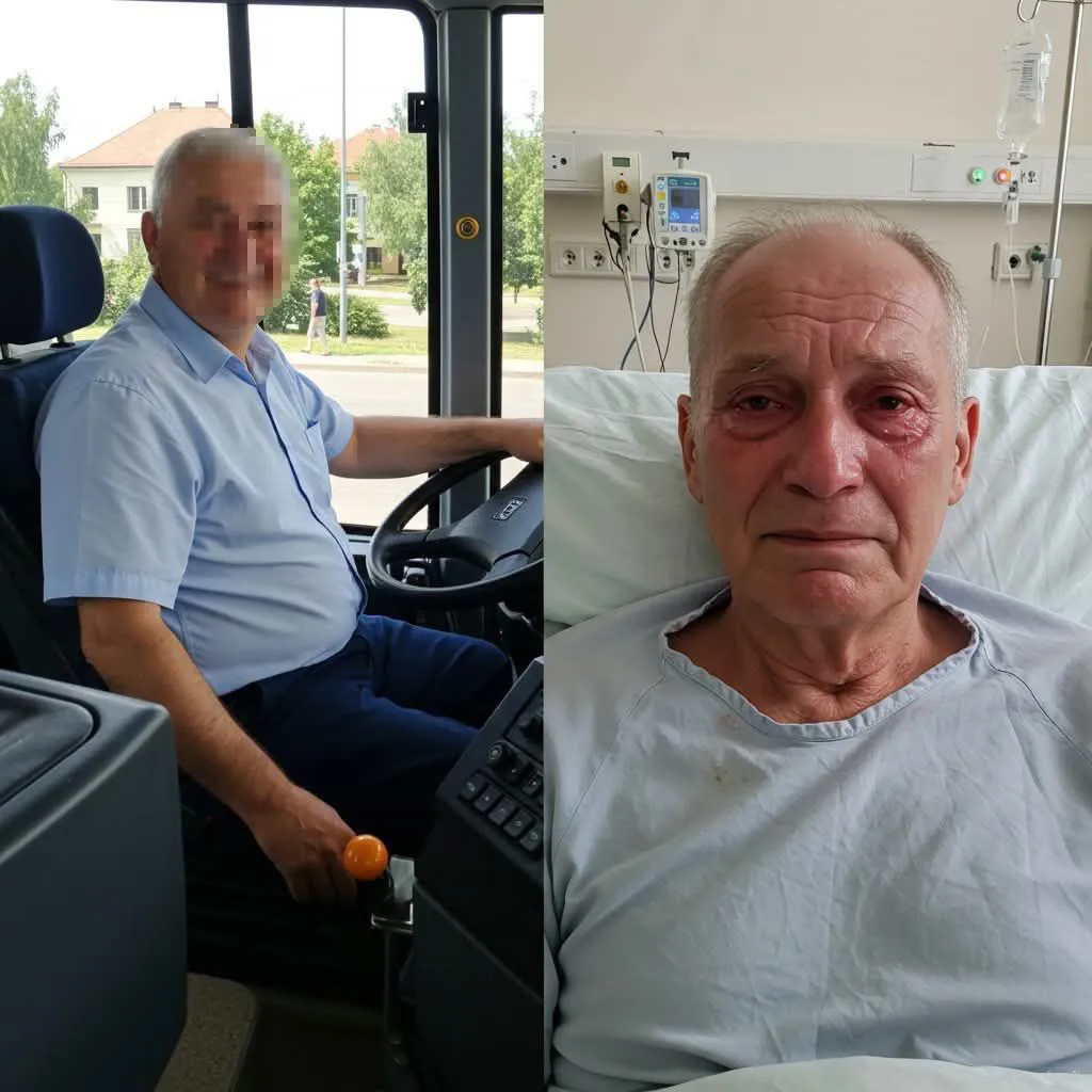 – olvasható, amihez két manipulatív képet is megosztottak - a buszban a szegedi sofőr boldogan mosolyog, majd könnyes szemmel fekszik a kórházi ágyon, magányosan néz mindenkire.