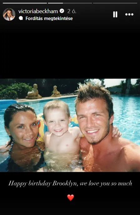 Úgy néz ki, Victoria Beckham jelenleg minden sérelmet félretett: a Spice Girls egykori énekesnője az Instagram-sztorijában két régi fotót osztott meg. Az elsőn ő és David pózolnak egy medencében, miközben a fiatal Brooklyn ragyogó mosollyal fordul a kamera felé.