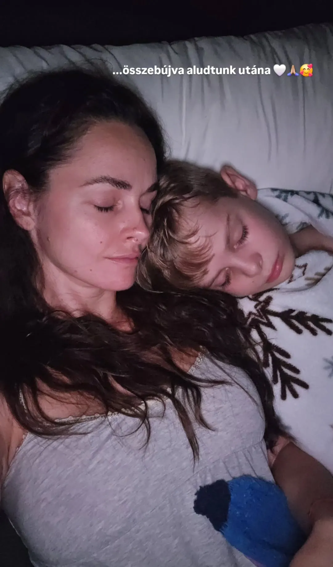 A természeti katasztrófa után nem hagyta egyedül az édesanya a kisfiát, együtt töltötték az estét. Az ilyen meghökkentő történések után természetes, hogy a család lesz a legfontosabb, amiről a kép is árulkodik.