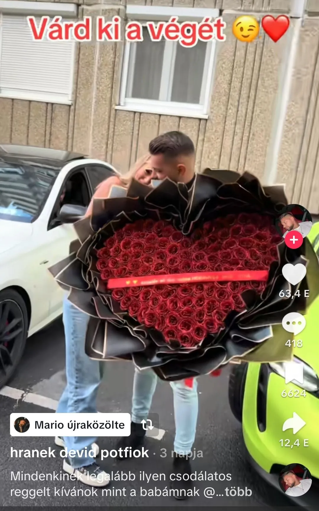 De a szappanopera itt sem ér véget. Redditen ugyanis újabb fordulatot vett a történet: rajongók kiszúrták, hogy Hranek Dávid, Kunu Márió jó barátja – ugyanezt a csokrot adta a saját párjának. Ráadásul egy TikTok-videó is előkerült, amelyben Hranek átadja a gigantikus virágcsokrot, miközben Márió mellette énekel szerelmes dalokat.