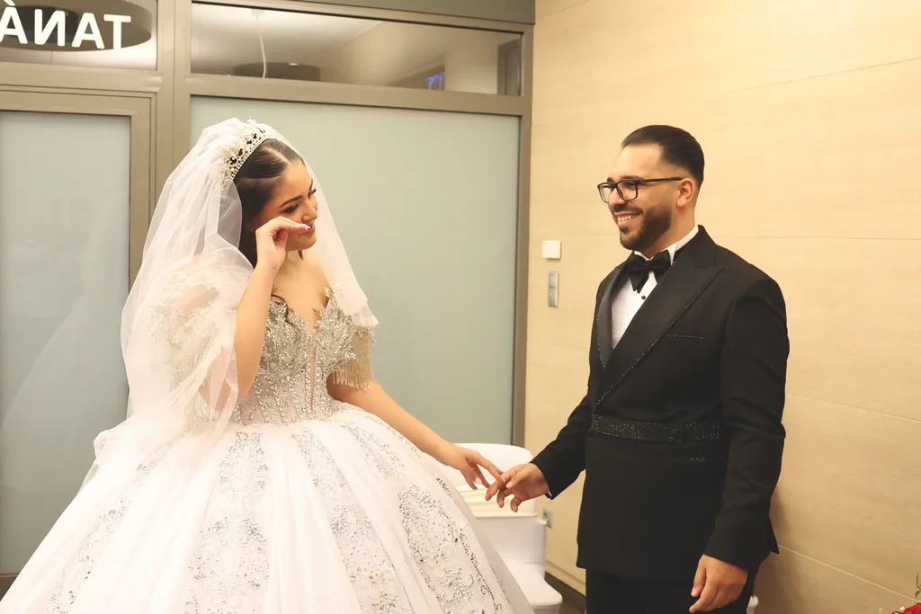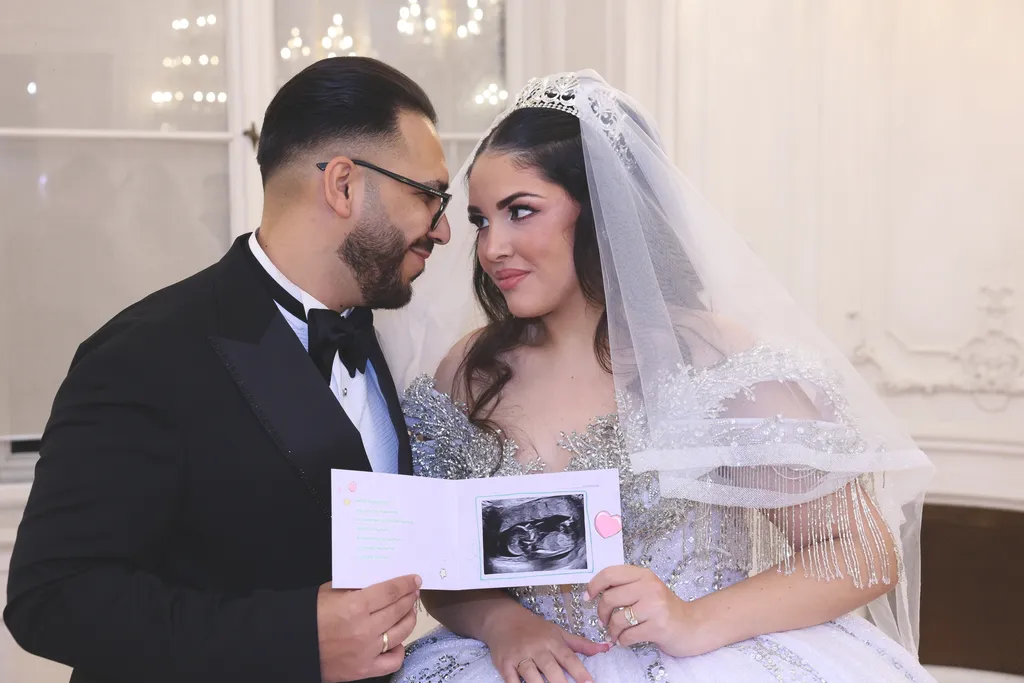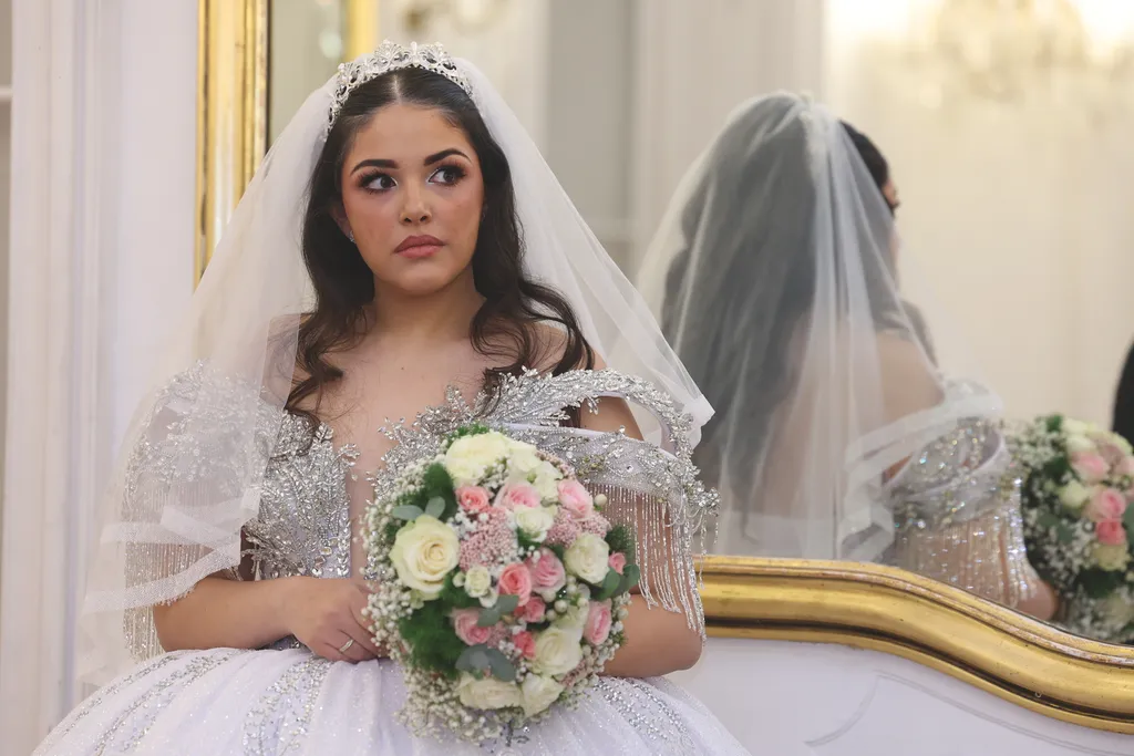 Kis Tina, Emilio lánya esküvői ruháját már azelőtt láthattuk, hogy Norbi, a vőlegény megpillanthatta benne. Az ezernyi kristállyal kirakott, hófehér, abroncsos ruha egy igazi ritkaság, amit Bangó Margit dédunokája egyenesen Dubajból hozatott. Ugyanabból a szalonból választott magának ruhát Bangó Margit unokája, vagyis a menyasszony édesanyja, Jellinek Tina is, csakúgy mint kis Tina féltestvére, a 14 éves Vivike, aki egy arany ruhakölteményben tündökölt. „Ez a ruha Dubajból származik. Én nagyon sok esküvőn énekeltem már, gyönyörű menyasszonyoknál, az elmúlt 30 évben…”