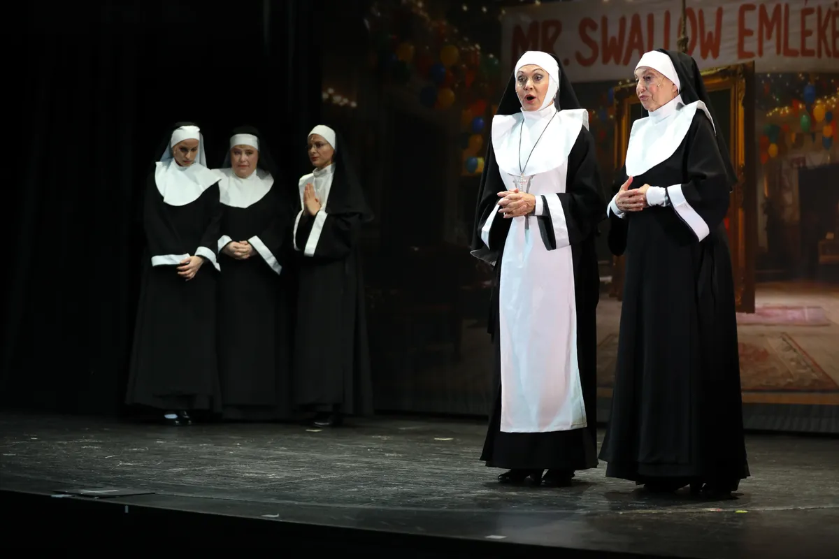 – vallotta be nevetve. Az Apácákban ráadásul sok mozgás, tánc és fizikai jelenlét vár rá, amit gond nélkül teljesít – pedig az egyik jelenetben még a földre is kell hasalnia, majd onnan felugrania.