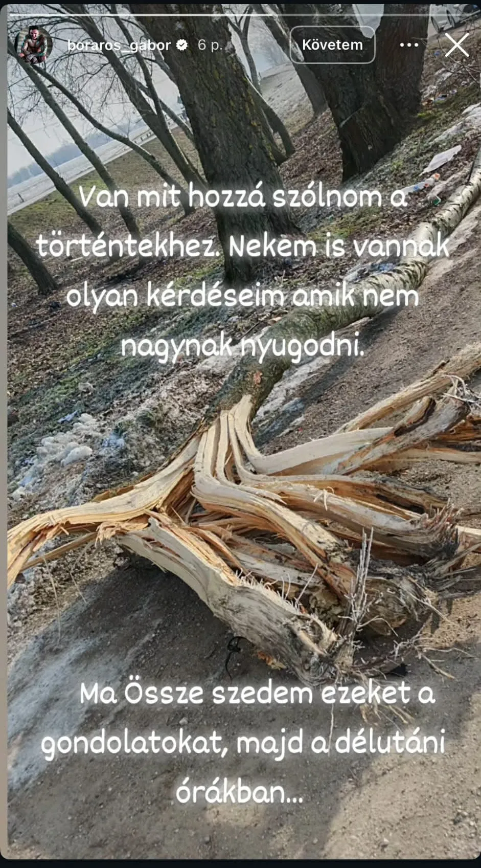 - írta korlátozott ideig elérhető Instagram-történetében Boráros Gábor.
