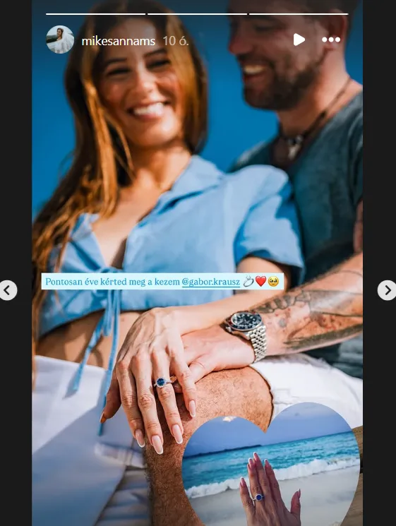 A Dancing with the Starsban megismert Mikes Anna természetesen csodálatos, boldog napként élte meg a lánykérést, a dátum pedig rögzült benne, hisz most Instagram-sztoriban tett ki egy fotót az évfordulóról.