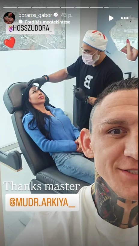 Boráros Gábor és párja, Dóra szépészeti beavatkozáson vettek részt. Ezt az MMA-harcos osztotta meg nemrég 24 óráig elérhető Instagram-történetében. Azt ugyan nem tudni, ő is bevállalta-e...