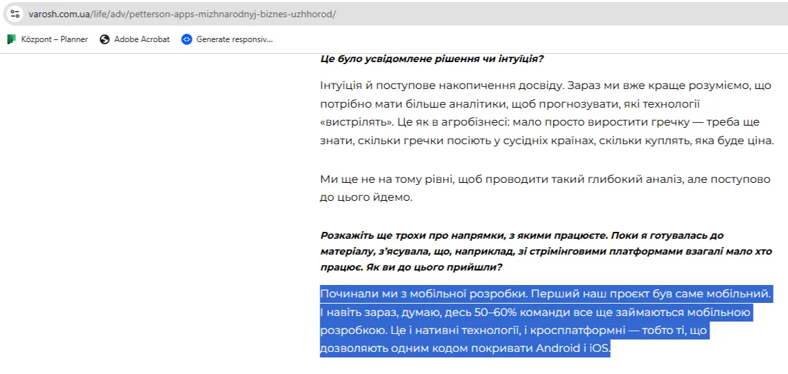 Magyar Péter nem véletlenül talált rájuk, ők egész Ukrajna legnagyobb applikáció fejlesztői, tevékenységük 50-60 százaléka ebből áll. Ráadásul Ungvár a székhelyük, Magyarországról tehát nagyon egyszerű kapcsolatot tartani velük. Első számú megrendelőjük az ukrán hadsereg. Így hirdetik magukat a neten: