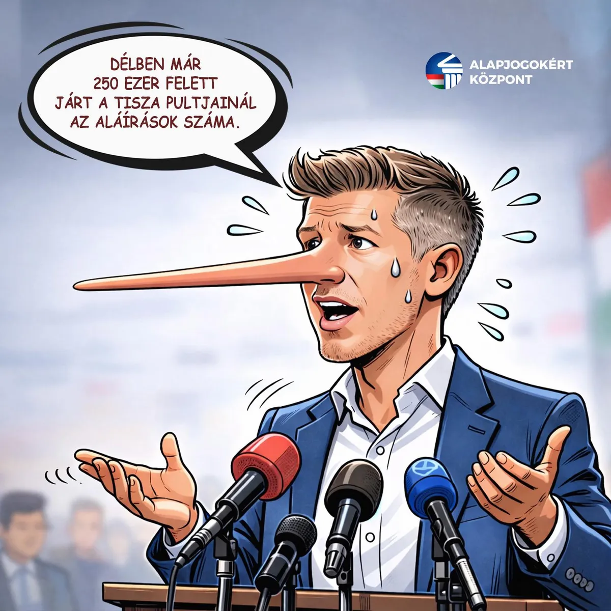 A Nemzeti Választási Iroda (NVI) hivatalos adatai szerint Magyar Péter biztosan hazudott a Tisza jelöltjei által gyűjtött aláírások számáról. A pártelnök azt állította, délig már több mint 250 ezer ajánlást gyűjtöttek országosan, azonban az NVI adataiból kitűnik, hogy ennek a számnak a mai napi hivatalos zárásig, délután 4 óráig is csak a jóval kevesebb mint fele, 110 ezer aláírás jött össze.