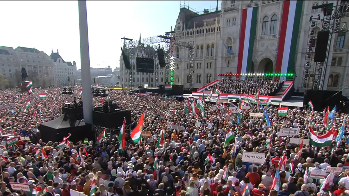 A Békemenetet követő Kossuth Lajos téri ünnepség lezárásaként Orbán Viktor lépett színpadra, aki többek közt arról beszélt, hogy egy erős, több mint 1000 éves nemzet vagyunk, így nem lehet olyan egyszerűen legyűrni minket, mint ahogy azt többen hiszik. Ennek ellenére Brüsszel és Kijev két oldalról szorítja Magyarországot, de Orbán Viktor ígéretet tett: vállalja, hogy megőrzi hazánkat a nyugalom és a béke szigetének.