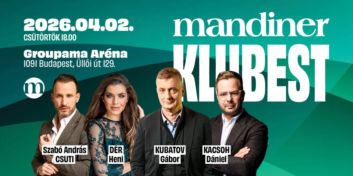 Április 2-án, 18 órától kezdődik s Groupama Arénában a tavasz utolsó budapesti Mandiner Klubestje, amin ott lesz Szabó András Csuti, Dér Heni és Kubatov Gábor is, aki közéleti beszélgetést folytat majd Kacsoh Dániellel.