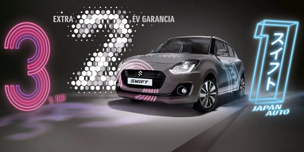 A versenyautókra emlékeztető D-alakú kormánykerékkel, a vezető felé fordított középkonzollal és a határozott tartású első ülésekkel maximálisan hozza ezt az érzetet. Egy autó, melynek tervezésekor szem előtt tartották a vezetési élmény mellett az utastér és a csomagtér megfelelő méretű kialakítását is. Az új Swift megszólítja játékos énjét. Mindig újabb kalandokra fogja ösztönözni és most még kedvezőbb feltételekkel pattanhat be a volánja mögé. A THM csak 3% és a meglévő három év mellett most extra 2 év garanciával viheti haza a Swiftet! Ne hagyja ki, ha egy kompakt és könnyen vezethető városi kisautóra vágyik!