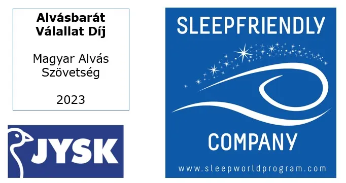 A JYSK üzleteiben minden olyan eszköz megtalálható, ami a pihentető éjszakákhoz kell – matracoktól kezdve a párnákon és paplanokon át egészen a praktikus kiegészítőkig. A Magyar Alvásszövetség Alvásbarát Vállalat díjjal jutalmazta a JYSK-öt, az alvás területén végzett tevékenységükért, illetve egyik matracuk Alvásbarát Termék díjat is kapott.