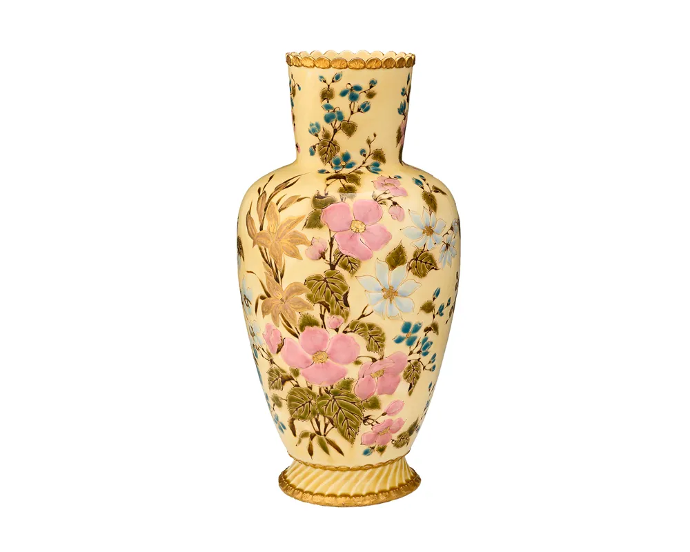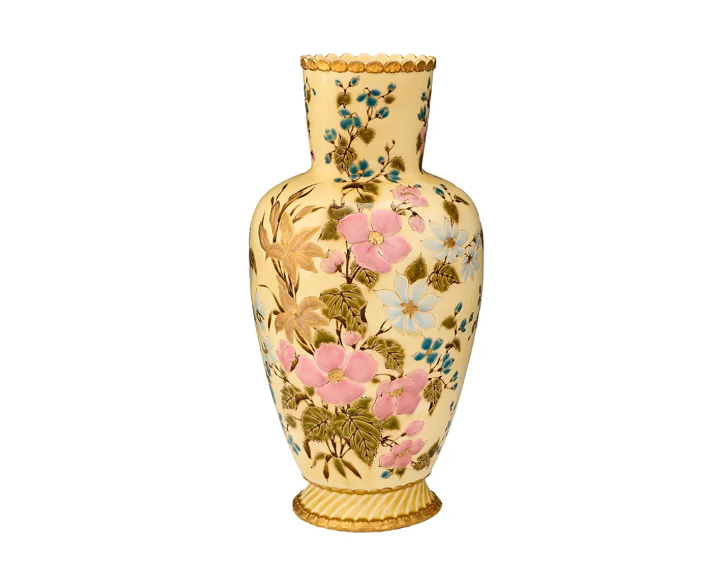 A műtárgyak között kiemelkedik a különleges, áttört peremű Herendi tortatál (XIX. század vége, 70 000 Ft), valamint a nagyméretű, látványos, festett vadrózsamotívumos Zsolnay díszváza (160 000 Ft), amely bármely enteriőrben azonnal fókuszponttá válik.