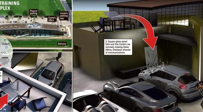 Ha Conte, a Chelsea-futballisták edzője éppen a kocsijába szállt volna be, alighanem üvegtörmelék okozza a végzetét. A londoni klub Cobhamben lévő edzőközpontjában éppen ebédelt, amikor parkoló Nissan Juke-ja szélvédőjébe felülről egy asztallapot vágott bele a dühöngő szélvihar.