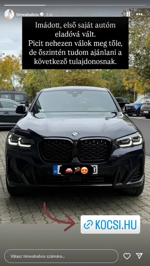 Abból is látszik, hogy Babos Tímea milyen nehéz szívvel szakít az első saját autójával, hogy közösségi oldalán szívecskékkel árasztotta el a kocsiról készített fotókat.