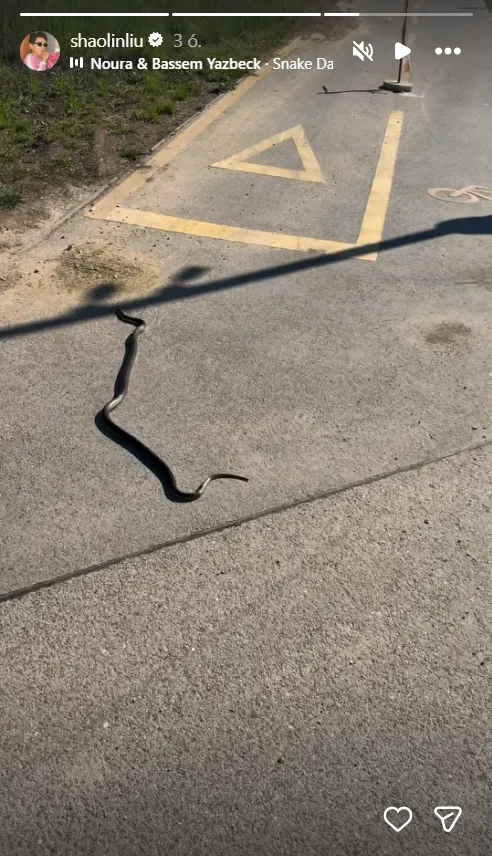 Liu Shaolin Sándor a nem mindennapi találkozást megörökítette a telefonjával, a felvételt pedig megosztotta a közösségi oldalán – hozzátéve a Snake Dance című dalt, aminek a címe magyarul annyit tesz: kígyótánc.