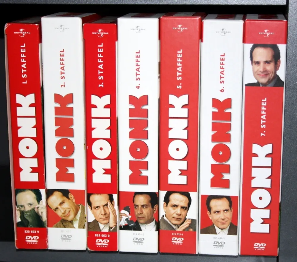 A Monk a flúgos nyomozóból egyébként DVD kiadás is készült, amely stílusosan rendetlen — ami a kényszerbeteg főszereplőt biztos kiborította volna, ha látja. Minél tovább nézzük, annál kellemetlenebb... mindez valószínűleg teljesen szándékos.