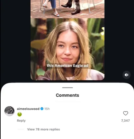 A reakció rövid és határozott volt, ezzel pedig sokakat fel is bosszantott, miután a Sweeney nem tért ki arra, hogy a reklámot sokan rasszistának nevezték. Az elégedetlenkedő között pedig nem kisebb név is kifejezte nemtetszését, mint A Fehér Lótusz 3. évadának sztárja, Aimee Lou Wood, aki a riportrészletet tartalmazó egyik videó alá egy hányós emojit kommentelt Instagramon.