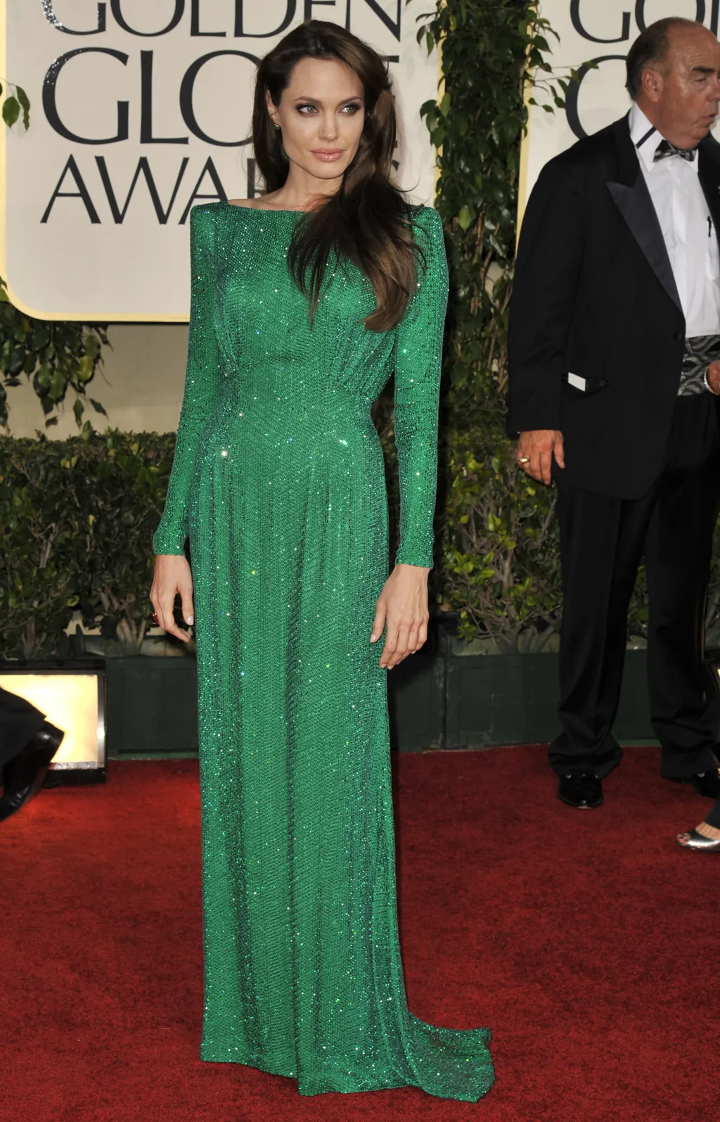 A Demóna sztárja még 2011-ben intézte úgy, hogy minden fej utána forduljon a 68. Golden Globe díjátadón. A hosszú ujjú smaragdzöld Versace ruha szinte az est főszereplőjévé vált, azóta is rendre felbukkan a legjobban öltözött sztárokról készülő listákon. A gálán még Brad Pitt feleségeként jelent meg, csodásan mutattak egymás mellett. Akkor még talán senki sem gondolta volna, milyen csúnya válóper lesz a tündérmese vége.