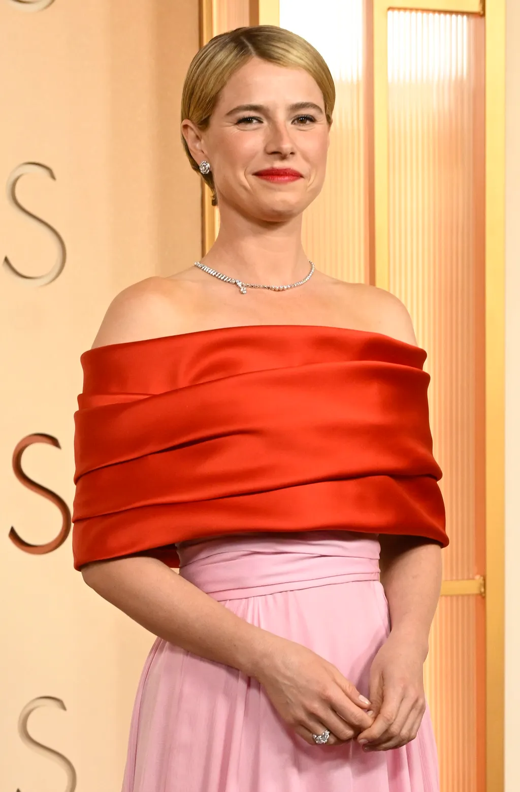Galériánkban a legszebb ruhakölteményeket válogattuk be a versenyzőktől és a résztvevőktől egyaránt. Előbbibe tartozik Jesse Buckley Oscar-díjas színésznő, akinek sikerült kikecmeregnie A menyasszony! kétes fogadtatásából, hogy aztán a Hamnet című filmért végül a legjobb női főszereplő díját nyerje el. Tökéletesen harmonizáló vörös és pink fátyol öleli körbe őt, nem túl hivalkodó, de egészen elegáns és megragadja a hálás közönség szemét. Szem nem maradt szárazon, amikor ebben a gyönyörű ruhában átvette a díját és az egyik legmeghatóbb beszédet mondta el az este folyamán, családjának és kiváltképp a férjének üzenve:
